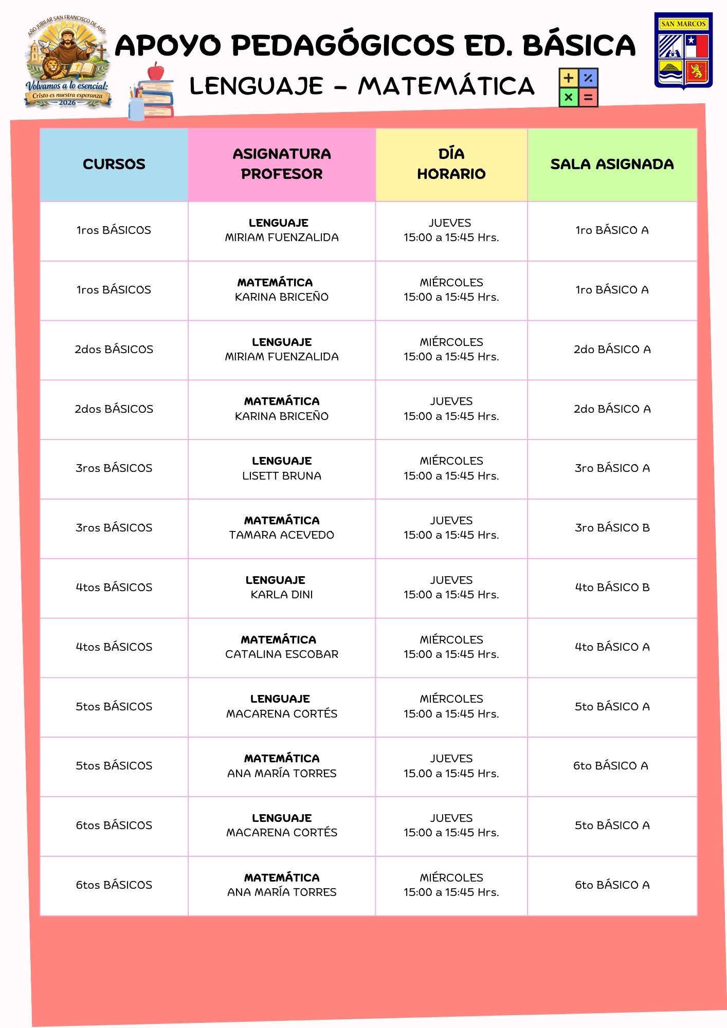 APOYO PEDAGÓGICO ED.BÁSICA LENGUAJE Y MATEMÁTICAS 2026